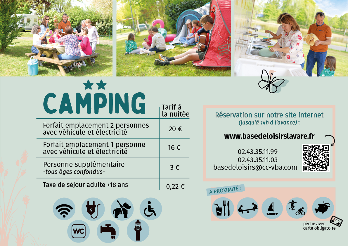 Au coeur d’un environnement paisible et verdoyant, la base de loisirs communautaire à Lavaré offre un cadre de vacances idéal pour l’accueil des groupes. Nous proposons un tarif groupe pour centres de loisirs qui souhaitent passer un séjour au camping : 5€/jour/personnes.